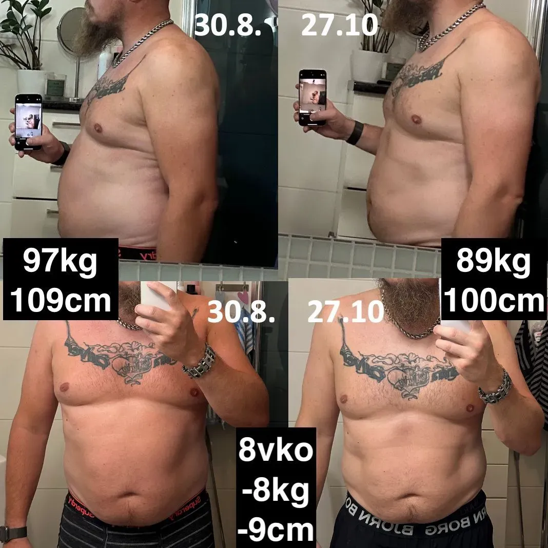 Ja kannattaa muistaa, että valmennuksen opit jäävät takaraivoosi loppuelämäksi ja vielä enemmän tuloksia syntyy tuon 8 viikon jälkeen!